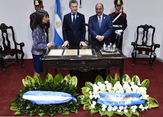 Antes, acompañado por la vicepresidenta Gabriela Michetti, y gobernadores de las provincias argentinas, firmaron hoy -en la Casa Histórica de Tucumán- una nueva proclama de independencia nacional denominada "Compromiso para el Tercer Siglo de los Argentinos", en el mismo lugar en el que, hace exactamente 200 años, lo hicieron quienes protagonizaron la Independencia nacional.