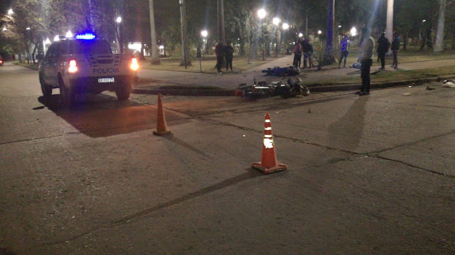 El accidente se produjo a las 21.30 horas entre una motocicleta marca Guerrero, modelo Trip, color negro, sin dominio colocado, guiada por un joven de 21 años quien fue llevado en ambulancia al Hospital "4 de Junio"; y otra moto marca Bajaj, modelo Rouser, de 200 cc., color amarillo, sin dominio colocado, conducida por un empleado policial de 21 años de edad quien resultó lesionado pero no requirió ser trasladado en ambulancia. Se labró Acta de Constatación con intervención de la División Criminalística y del médico policial. Efectivos de Comisaría 2º colaboraron en el lugar.